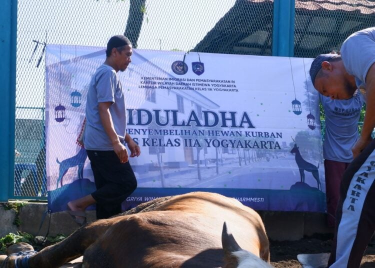Lembaga Pemasyarakatan (Lapas) Kelas IIA Yogyakarta atau Lapas Wirogunan merayakan Hari Raya Iduladha 1446 H dengan menyembelih sembilan ekor hewan kurban pada Jumat (6/6/2025). Adapun hewan kurban terdiri dari dua ekor sapi dan tujuh ekor kambing.