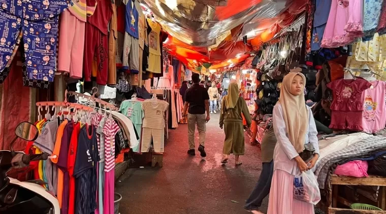 “Pakaian lalok, training sarawa hawaii, tigo saratuih, kamarilah,” kata pedagang di lapak-lapak Pasa Lereng, Bukittinggi, Ahad (24/11/2024).